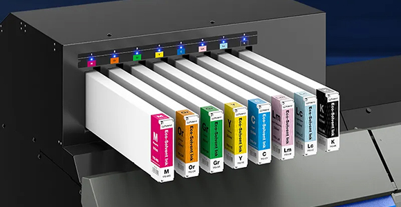 Impressora rolo-a-rolo de 64 polegadas (1625 mm) a 4 cores (CMYK), equipada com tecnologia UV à base de água.