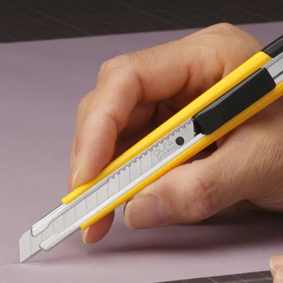 X-acto OLFA® com lâmina de 9mm e sistema de bloqueio "Auto-Lock", encaixe rápido para mudança de lâmina e com design próprio para esquerdinos ou destros. Recomendado para cortar papel de parede, vinil, invólucros, películas, calafetagem, papelão, k-line, entre muitos outros. Compatível com as lâminas 9mm Standard AB, Stainless Steel AB-S, Ultra-Sharp ABB e Tight Angle 30º SAB.