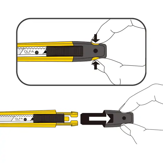 Enquanto pressiona as abas nas laterais, retire o clipe e substitua a lâmina.