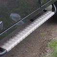 • Placa de alumínio simples, sem acabamento, com conjuntos de 5 faixas antiderrapantes cruzadas, em toda a sua extensão.