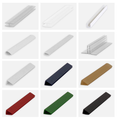 Gama de perfis de união e acabamento para diversas utilizações. Acessórios simples e económicos para decorações de interior, feiras, exposições, promoções, etc.