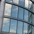 Filme de poliéster (PET) para protecção e privacidade de interior de edificios. Disponivel em espelho, bronze e prata permitindo visualização a partir do interior. O índice de reflectividade da película aumenta ou diminui em função da intensidade da luz.