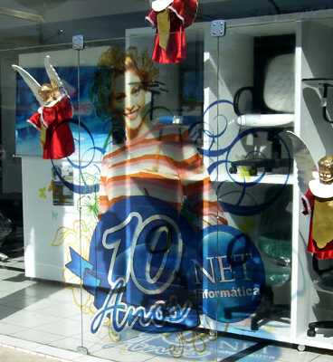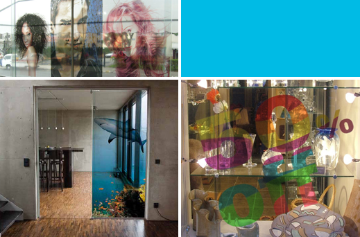 • Aplicações de comunicação visual e publicidade em janelas e divisórias de vidro e acrílico de superfícies comerciais, bares, restaurantes, etc.
